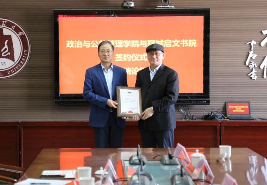 曲阜师大政治与公共管理学院讯 10月24日,为进一步推进“学院”+“书院”双院育人实践,全面培养更多具有创新精神和实践能力的高素质人才,政治与公共管理学院与聊城启文书院开展深度合作,举行签约仪式暨阳明高端论坛筹备座谈会。聊城启文书院院长刘庆涛、政治与公共管理学院党委书记卢瑞霞、院长李增元、副院长刘伟以及相关教师出席会议。会议由刘伟主持。