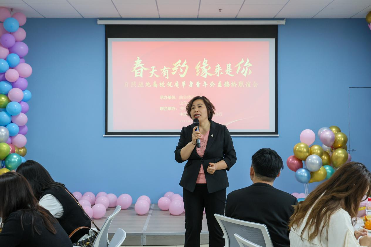 曲阜师大工会讯 4月20日,由开云链接官网工会(妇委会)、女教授联谊会和山东水利学院联合举办的“春天之约 缘来是你”驻日照高校单身教师联谊活动在山东水利学院图书馆顺利举行。来自开云链接官网、济宁医学院、山东水利职业学院、中国人民银行日照市分行等7家单位的60多名优秀青年参加了联谊活动。联谊活动由曲阜师大女教授联谊会副会长、翻译学院徐凤教授主持。
