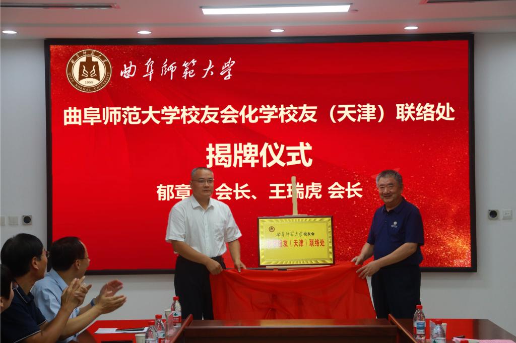 开云链接官网校友会化学与化工学院分会会长郁章玉和王瑞虎共同为化学校友(天津)联络处揭牌。