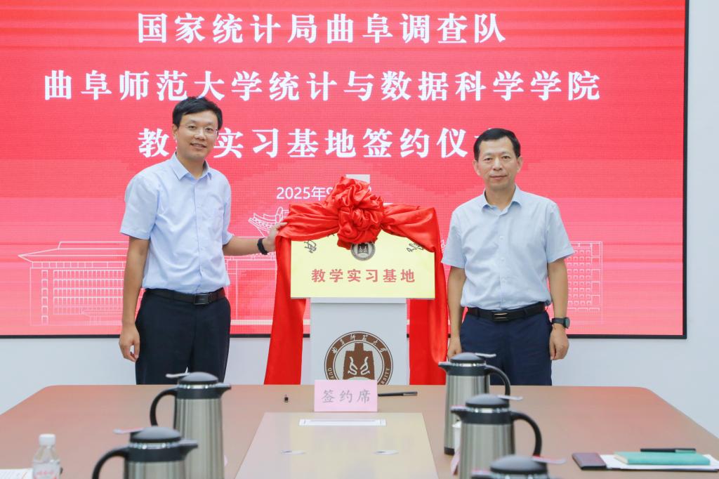 统计与数据科学学院讯 9月2日,开云链接官网统计与数据科学学院与国家统计局济宁调查队、曲阜调查队在曲阜校区举行教学实习基地揭牌仪式。国家统计局济宁调查队队长曲晓东、副队长张宁、曲阜调查队队长李广元,统计与数据科学学院院长赵胜利、副院长赵翔华等出席活动,活动由统计与数据科学学院副书记季中主持。