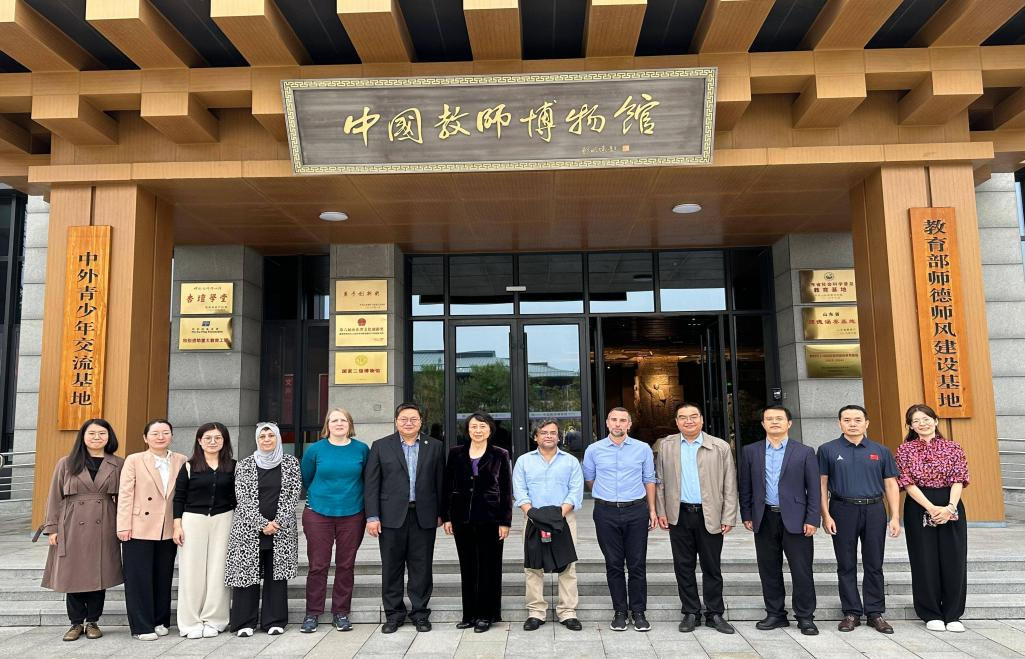 代表团首先参观了中国教师博物馆,并在讲解员的引导下详细参观了“教师的历史”“教师的摇篮”“教师的典范”三大展区,代表团成员不时驻足凝视珍贵展品,并详细询问背后的教育故事与文化内涵。王一丹表示,中国教师博物馆生动呈现了中国教育发展的历史脉络与教师文化的深厚底蕴,为全球化背景下的教育事业提供了宝贵的实物依据和研究素材,这种对教育历史与文化的珍视值得肯定与推广。