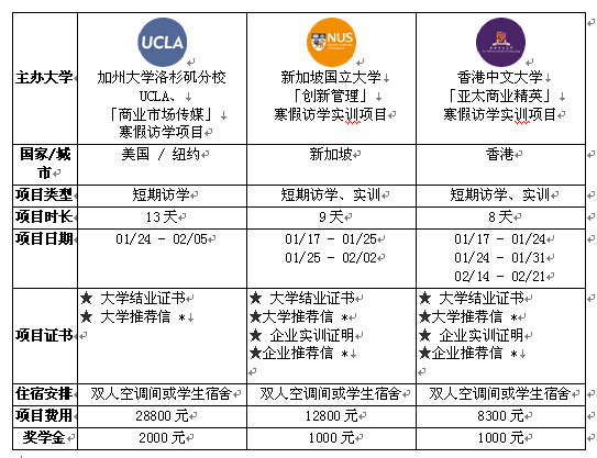 4. 关于费用:以上所列为项目费,不包括机票、护照或通行证及签证费。(加州大学洛杉矶项目提供早餐、新加坡国立大学项目提供早餐)。