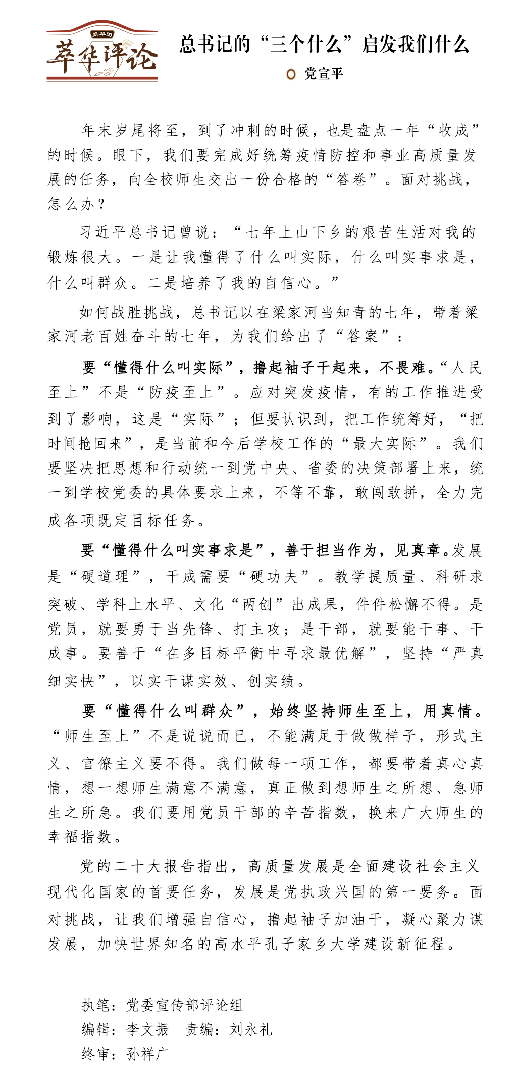 文:党委宣传部评论组