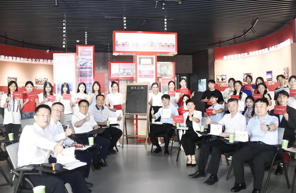 本期主题为“顶天立地”,设计了“观察、思考、体悟、践行”四个环节,选择在教师博物馆第二展厅“师字厅”举办。化学与化工学院毕业生代表、美术与书法学院书法学(师范)3班同学、大学生师德宣讲团代表围坐在一起,听邢永忠教授讲述水稻培育中的科学家精神,学刘涛教授践行“国之大者”的使命担当,师生多视角探讨“顶天立地”的内涵,激发青年报效祖国的热情和决心。