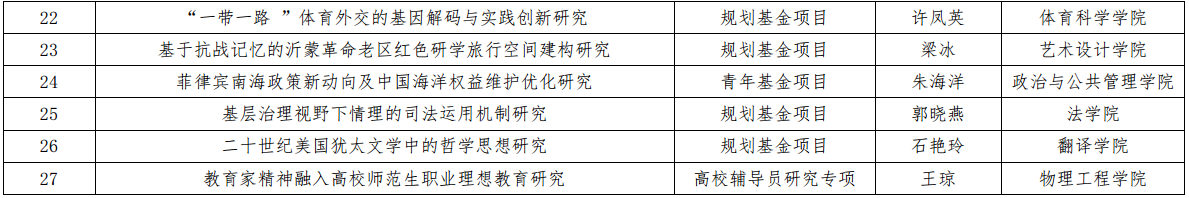 曲阜师大社会科学处讯 近日,教育部社科司正式公布了2024年度教育部人文社会科学研究项目立项名单,曲阜师大共27个项目获批立项,一般项目立项总数并列全国高校第8位,立项总数创历史新高。