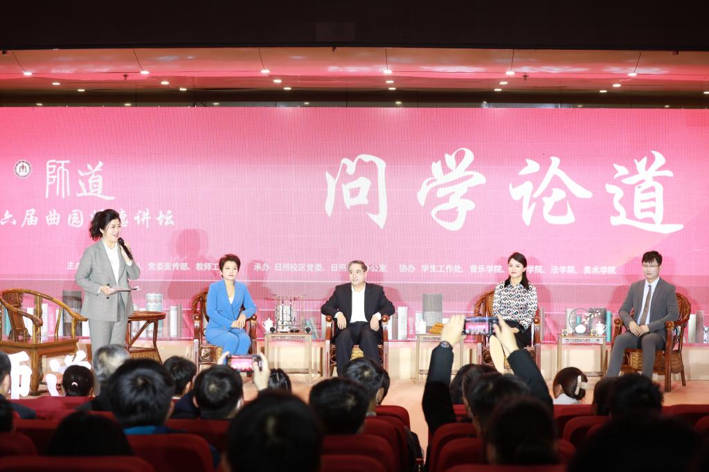 授牌仪式后,由我校音乐学院副教授、师德标兵张建华老师主持的第六届曲园师德讲坛正式拉开帷幕。本次讲坛邀请我校四位“最美教师”“师德标兵”代表:法学院李冬楠副教授、马克思主义学院汤锐副教授、管理学院徐健腾教授、工学院武玉强教授作为嘉宾。视频短片带领现场观众走进了老师们教书育人的点滴生活,一张张照片、一幕幕场景无不展示出曲园师德风采。四位嘉宾在现场分享了各自的从教经历和心路历程,就如何做好新时代“四有”好老师,结合亲身经历从科研工作、教学工作、生活趣事与现场观众进行了深入交流。