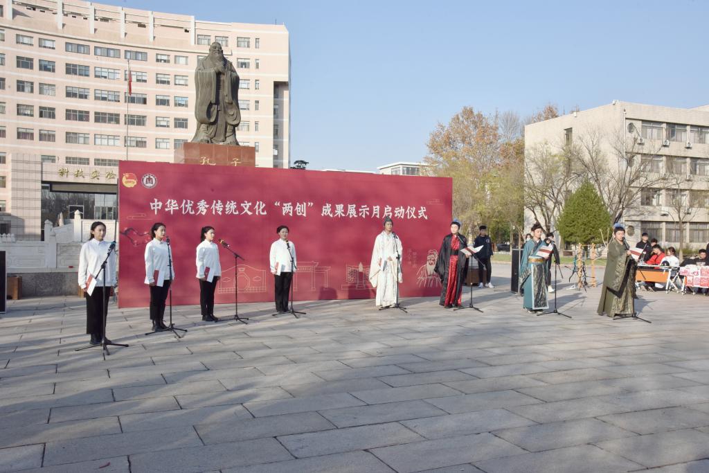 李兆祥在启动仪式上发表讲话。他指出,党的十八大以来,以习近平同志为核心的党中央高度重视中华优秀传统文化的传承发展,在习近平总书记视察曲阜发表重要讲话八周年之际,曲阜师大举办本次中华优秀传统文化“两创”成果展示月活动的意义重大而深远。作为设学孔子故里、中华文明的重要发祥地和儒家文化发源地的大学,全校师生应认真践行习近平总书记视察曲阜重要讲话精神,不忘“为国弘文”的文化使命,发掘孔子故里的独特文化资源,积极推动中华优秀传统文化“创造性转化、创新性发展”,完成“以古人之规矩,开自己之生面”的时代任务,培育新时代具有“君子人格”的马克思主义者。