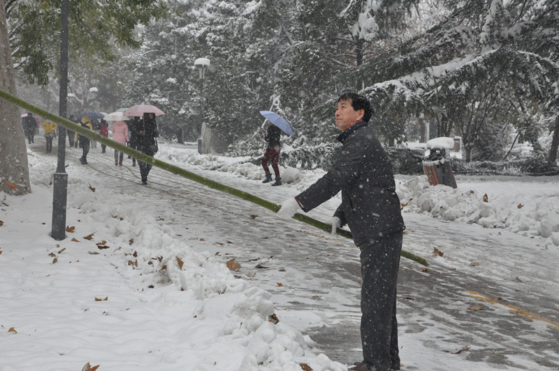 师生协作 奋力除雪