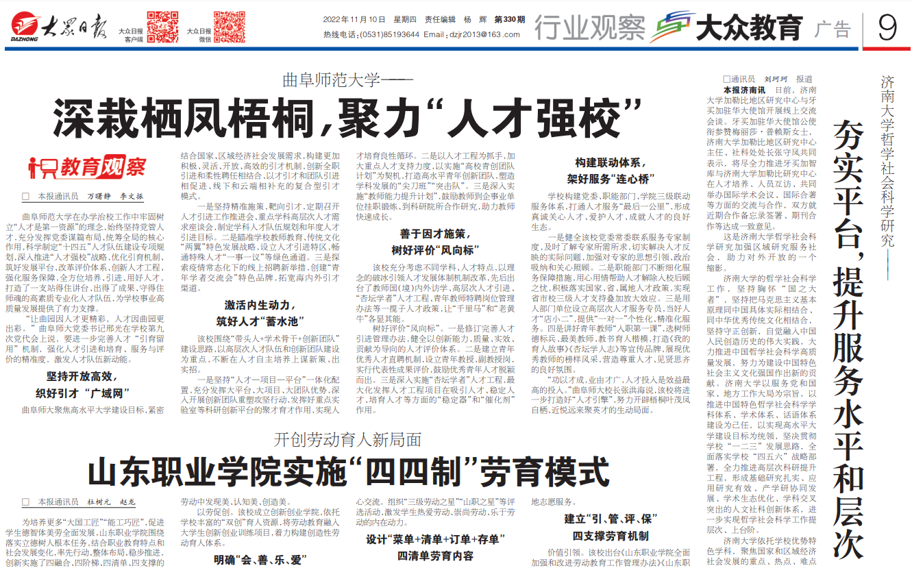 《大众日报》聚焦报道曲阜师大“人才强校”典型经验