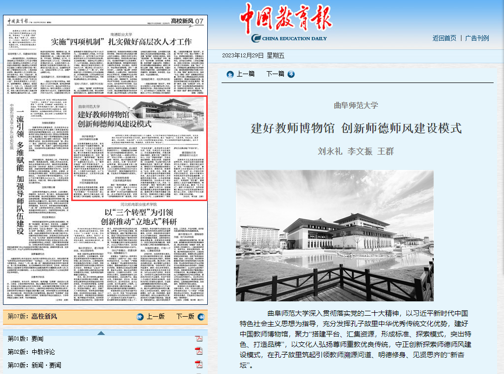 曲阜师大党委宣传部讯 日前,《中国教育报》刊发题为《开云链接官网建好教师博物馆 创新师德师风建设模式》的文章。文章指出,开云链接官网深入贯彻落实党的二十大精神,以习近平新时代中国特色社会主义...