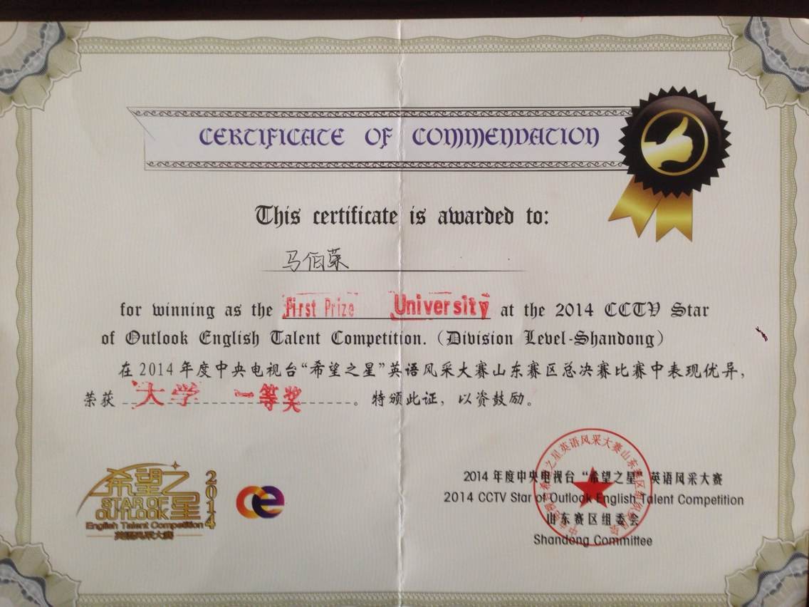 我校翻译学院学子在2014年CCTV“希望之星”英语风采大赛山东省赛区总决赛...