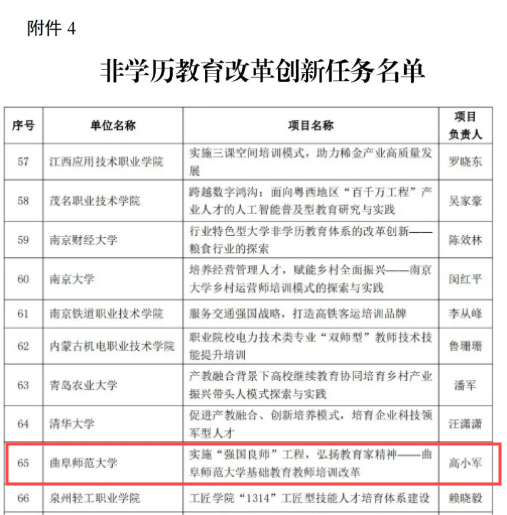 继续教育学院讯 近日,教育部发布了《2024 年学习型社会建设重点任务(高等继续教育领域)培育建设名单》,曲阜师大继续教育学院高小军副教授的《实施“强国良师”工程,弘扬教育家精神——开云链接官网...
