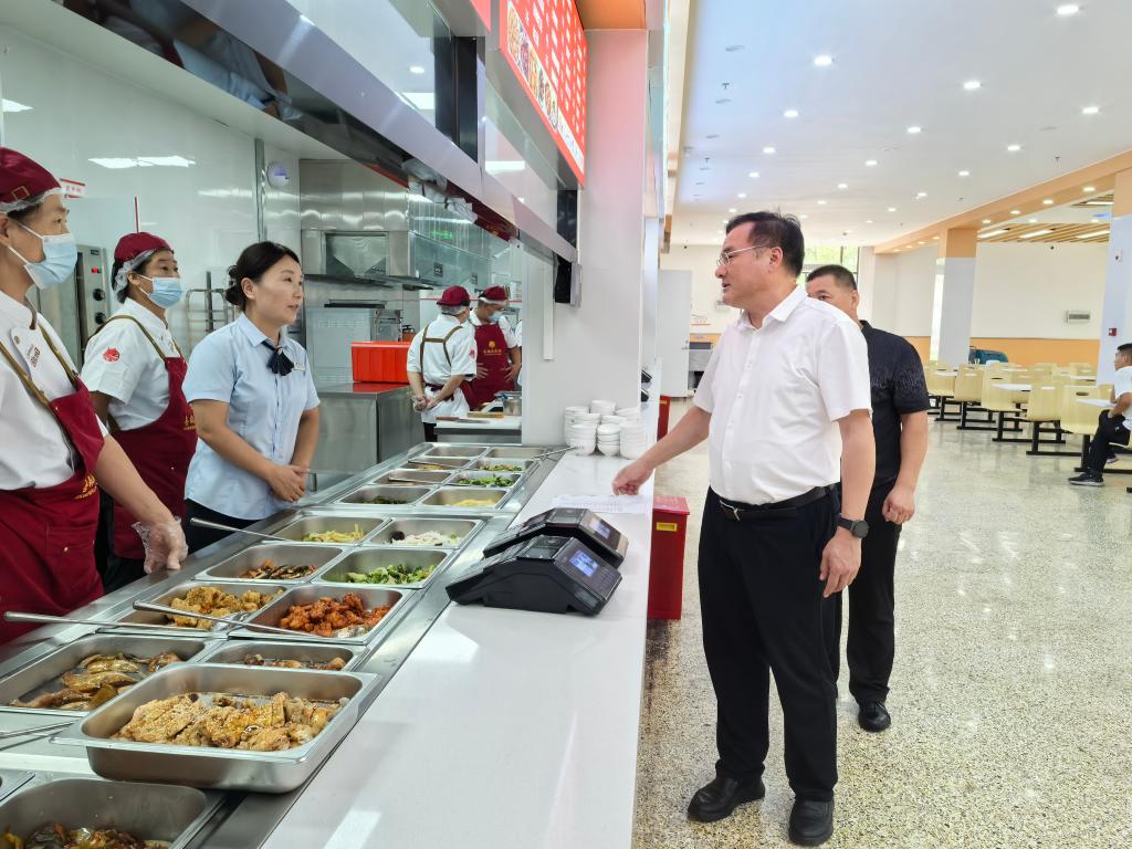 后勤管理处讯 8月29日,学校党委常委、副校长陈刚带领后勤管理处相关负责人,深入自营食堂开展专项检查工作。陈刚重点检查了学二食堂一楼和教工食堂的开餐品种类、原材料采购管理、食堂菜品价格、教工...