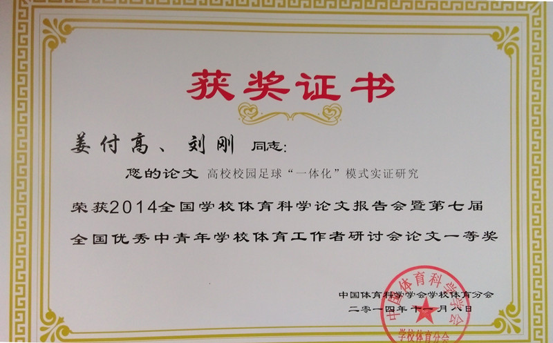 我校教师参加2014年全国学校体育科学论文报告会并获一等奖